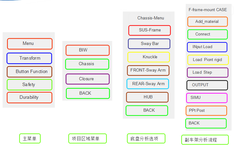 目前HyperWorks在汽车产品设计、研发、分析过程中得到了广泛的使用。在整个CAE分析流程中,对模型的前处理一直是工程师消耗时间最多环节,对于同一类产品的分析,前后处理工作涉及大量重复性操作、手工操作。这些重复性工作不仅耗费时间,而且可能由于人为因素而产生遗漏和错误。因此,采用合适的工具,在现有软件的基础上进行二次开发,设计出一套CAE分析的标准流程,必然能够提升CAE工程师的工作效率,缩短产品开发周期,并且避免错误操作。另外,通过自主研发的流程自动化系统,可以将企业中成熟的产品分析流程固定化、标准化,便于技术在企业内部推广。