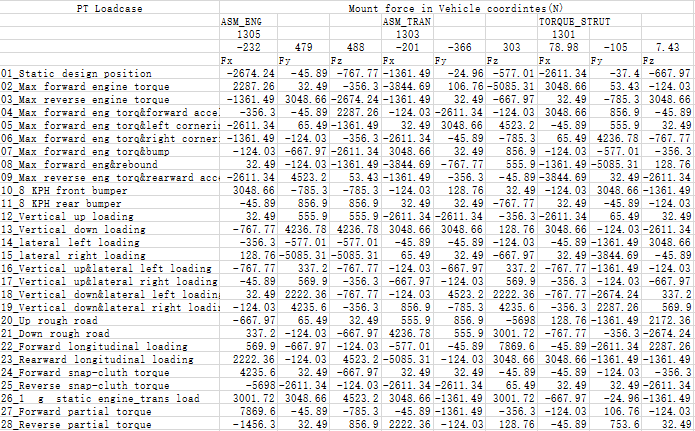 1.通过Adams求解车辆在各工况下各硬点的力作为有限元分析的输入。